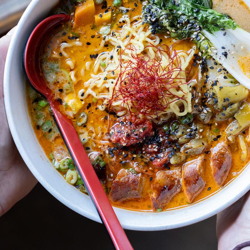 First time take out. Red curry veggie was awesome. Great flavor quality and experience. Super friendly service. Loved it.